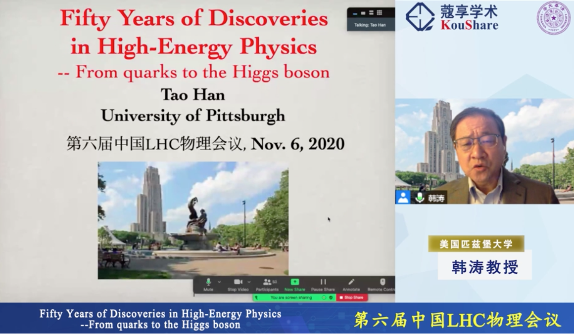 11月6日晚,美国匹兹堡大学粒子物理天体物理宇宙学中心主任、美国物理学会“粒子物理与场论”分部主席韩涛作了题为“高能物理半个世纪的重大发现:从夸克到希格斯玻色子”的讲座。来自乐鱼在线平台至理书院、物理系、工程物理系,以及国内其他高校的1100多名本科生在线参加讲座。同学们表示,在这场科学盛宴中,不仅聆听了最前沿的物理知识,更感受到了物理学家追求真理的执着精神。