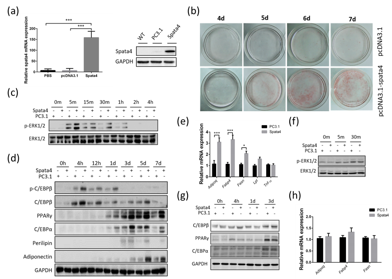 图4. SPATA4过表达通过ERK1/2信号通路促进脂肪细胞分化