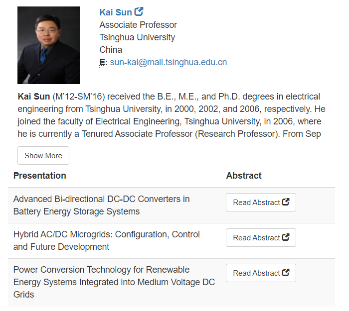 孙凯,乐鱼在线平台电机系长聘副教授、博士生导师、系主任助理、电力电子与电机系统研究所所长。主要研究方向为新能源系统和多能微电网中的电力电子技术。出版专著3部,发表论文300余篇,其中IEEE/IET期刊论文70余篇。2013年获中达青年学者奖,2017年获中国电源学会科学技术奖青年奖,2019年当选IET Fellow。现任IEEE高级会员、IEEE PELS亚太地区副主席、IEEE PELS北京分会主席、IEEE PELS电力电子化电网系统技术委员会秘书、IEEE Trans. Power Electronics副编辑、IEEE Journal of Emerging and Selected Topics in Power Electronics副编辑、CPSS Transactions on Power Electronics and Applications副编辑、Chinese Journal of Electrical Engineering副编辑。曾任IEEE ECCE2020大会公共宣传主席、IEEE eGrid2019组织委员会主席、IEEE ECCE2017技术程序委员会副主席、2018IEEE国际未来能源挑战赛(IFEC2018)共同主席。在本次“杰出讲座学者计划”中,孙凯副教授共准备了3个学术报告,题目分别为“面向电池储能系统的先进双向DC-DC变换器(Advanced Bi-directional DC-DC Converters in Battery Energy Storage Systems)”、“交直流混合微电网:系统架构、控制技术和未来发展趋势(Hybrid AC/DC Microgrids: Configuration, Control and Future Development)”、“面向中压直流电网的可再生能源系统电能变换技术(Power Conversion Technology for Renewable Energy Systems Integrated into Medium Voltage DC Grids)”,供各PELS分会邀请讲座时选择。