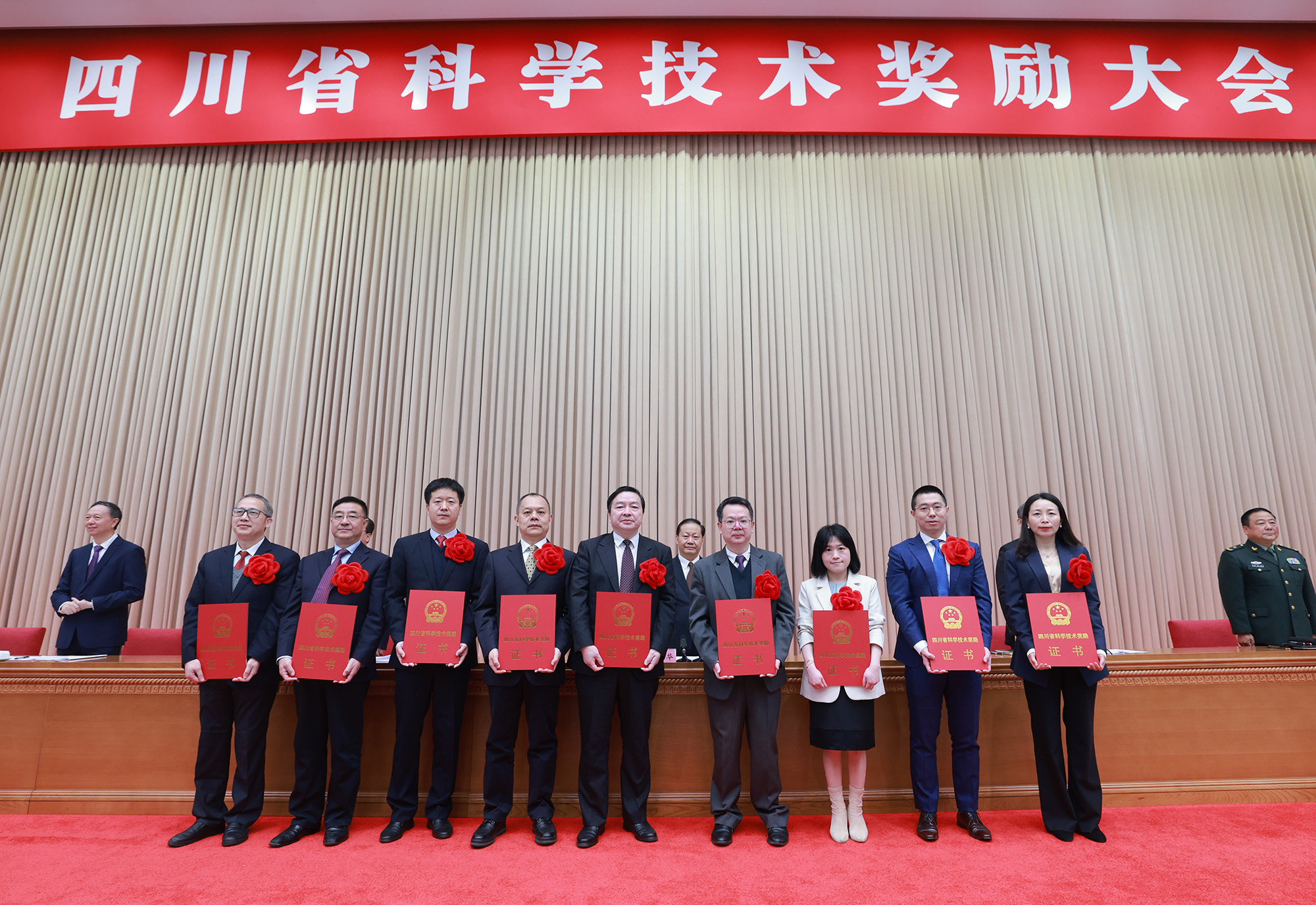 西南科技大学党委书记、乐鱼在线平台水利系双聘教授、研究院清洁能源中心首席科学家陈永灿作为项目负责人接受颁奖(前排左五)