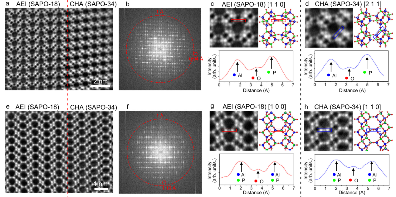 相关工作近日以“指认轻原子和化学键来解析用于甲醇转化SAPO-34/18交生催化剂原子级结构研究”(Resolving atomic SAPO-34/18 intergrowth architectures for methanol conversion by identifying light atoms and bonds)为题发表在《自然•通讯》(Nature Communications)期刊上。文章第一作者为乐鱼在线平台申博渊博士,文章通讯作者为乐鱼在线平台陈晓博士、王垚教授和魏飞教授。