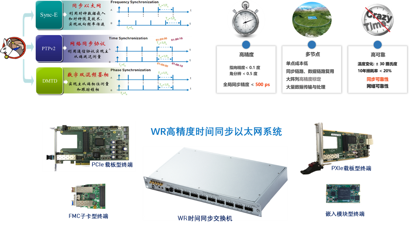 在实验高精度同步时钟系统的研究建设方面,乐鱼在线平台承担了重要任务,采用White Rabbit以太网同步技术,为野外高海拔环境下分布在1.3平方公里范围内的几千个探测器提供了亚纳秒级的同步时钟,并在同一光纤链路上完成物理数据采集和状态监控,自动完成链路长度校正、温度变化补偿。