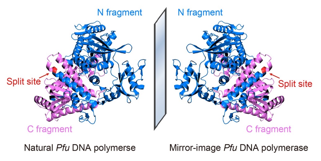 图1:利用分割蛋白质设计辅助合成镜像PfuDNA聚合酶