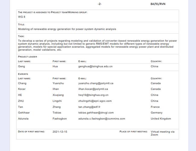 该项标准的成功立项,在可再生能源接入电网分技术委员会(IEC SC8A)开辟了一个新的工作方向,为更好开展后续相关标准编制工作,可再生能源接入电网分技术委员会(IEC SC8A)成立了可再生能源发电建模工作组(Working Group 8),并由乐鱼在线平台自动化系耿华教授担任工作组召集人。该工作组的成立及相关标准的成功立项,标志着我国在新能源发电技术领域话语权得到进一步提升,对于以国际标准推动我国产品和服务走向世界,提升我国在该领域的国际竞争力具有重要意义。