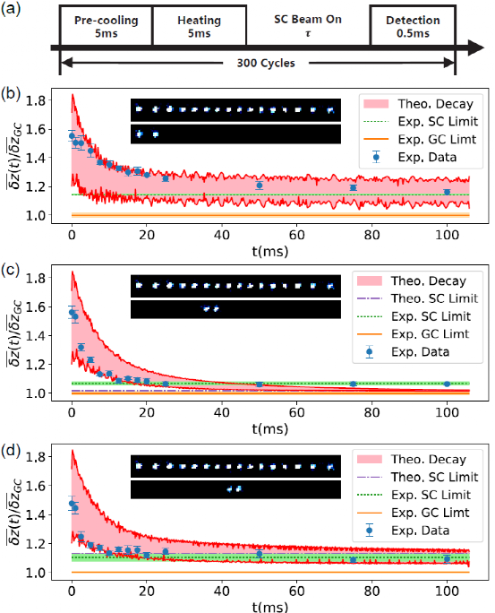 此前,在离子阱系统中仅实现过小规模离子阵列的协同冷却。为了进行大规模的量子计算和量子模拟,需要进一步增加系统中的离子数。而随着离子阵列的规模扩大,多离子的集体振动模式也变得越来越复杂,使得通过少数离子进行协同冷却的效率降低。在这项工作中,研究人员通过分析一维长离子链的集体振动模式,优化设计出最佳的若干个相邻的“冷却离子”,对整个离子链进行协同冷却。研究人员还从实验上演示了该方案,利用两个优化设计的相邻“冷却离子”,对8到28个离子的一维离子链进行了高效的协同冷却,达到了接近全局多普勒冷却极限的冷却效果。该实验对于保持大规模离子阵列的稳定性、实现未来的大规模量子计算和量子模拟,具有重要意义。