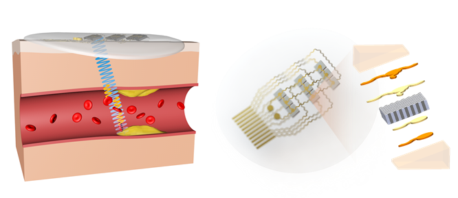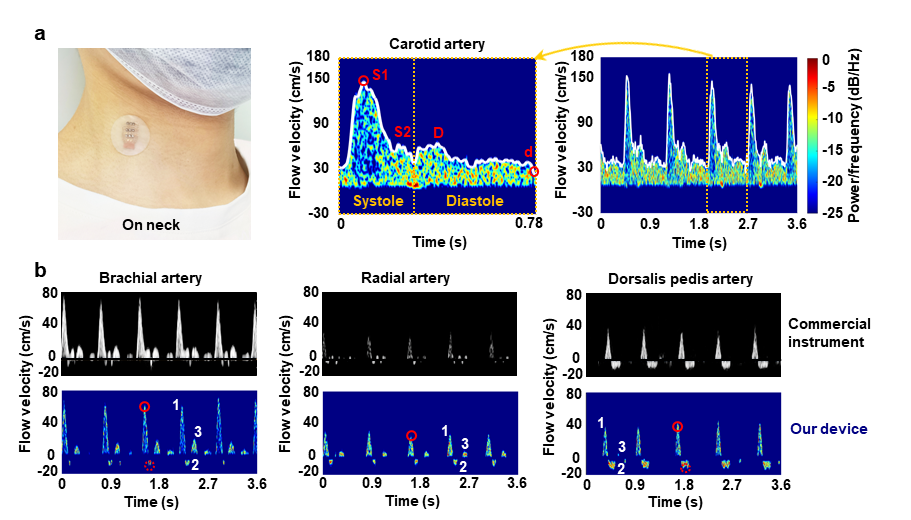 乐鱼(中国)网10月29日电 心血管疾病是全球第一大死因,据世界卫生组织预测,到2030年将有约2360万人死于心血管疾病,长期连续监测血流速度对心血管疾病防治具有重要意义。例如,颈动脉在高血压、高血脂等因素作用下往往会出现一定程度的硬化而形成硬化斑块,容易引发脑卒中危险,准确判断管腔狭窄程度是预警斑块脱落和防治脑卒中最重要的方法之一,但当前可持续监测血管狭窄状况的技术手段十分缺乏。基于光容积描记术或热分析的技术只能提供相对的流量变化,探测深度很浅;而传统的超声设备体积大、材质刚性,存在固定困难、接触变形大、无法与人体表面良好耦合和难以连续监测等缺点。