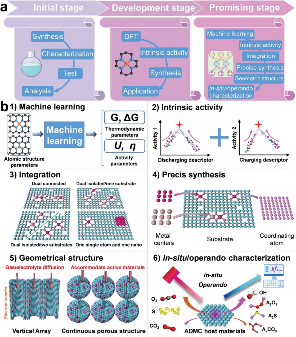 基于团队前期系列研究成果,研究团队近期发表综述论文总结了原子分散金属催化剂的基本设计和集成策略。该综述首先系统分析了基于转换反应电池的工作原理以及限制可逆转换动力学的主要因素,然后揭示了原子结构和本征活性之间的关系,最后总结了基于转换反应电池应用的双功能原子分散金属催化剂(G-ADMC)的发展机遇、指导方针和挑战。该综述对于开发高能量效率和密度的基于转化反应的电池具有重要意义。