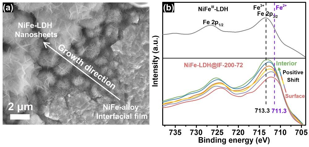乐鱼(中国)网12月3日电 氢气是一种高密度的能量载体和重要的化工原料,耦合可再生能源发电的电解水是一种可持续发展的制氢方法,当前电解水的效率主要受限于其阳极析氧反应(OER)较高的过电势。为了提高电解水的效率,需要使用电催化剂降低OER的过电势。利用腐蚀法在泡沫铁上制备的自支撑镍铁层状双氢氧化物(NiFe-LDH@IF)因其良好的OER电催化性能被认为是最具有应用前景的OER电催化剂之一。然而目前NiFe-LDH@IF的生长机制还不清楚,而且不同腐蚀条件对NiFe-LDH@IF电催化性能的影响还不甚了解。这些认知的缺乏严重阻碍了NiFe-LDH@IF的发展和应用。