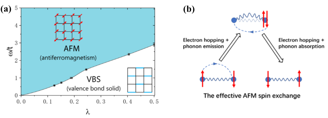 电声子模型基态相图(a) 有效的反铁磁自旋交换作用(b)