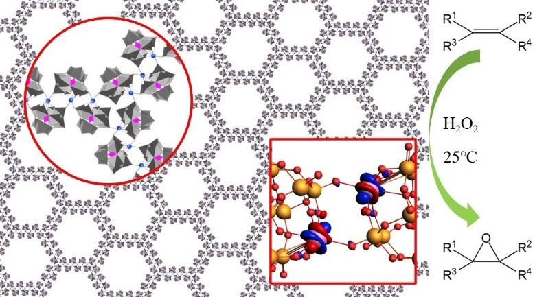基于此,乐鱼在线平台化学系王训课题组首次报道了一类基于多金属氧簇(POM)的新型类石墨烯材料——“团簇类烯”。与以往二维材料体系以原子、分子为结构基元不同,该团簇类烯以亚纳米尺度的团簇为结构基元,构筑了一类新型的亚纳米二维材料体系。团簇类烯对于烯烃催化环氧化反应,在催化活性和稳定性方面均显示出极大的提升,其转换频率(TOF)是未组装团簇基元的76.5倍。离散傅里叶变换(DFT)计算结果显示,团簇间的电子离域行为有效的降低了材料参与氧化还原反应的活化能,从而造成了催化活性的显著提升。13种不同元素取代的Keggin型团簇均可用于团簇类烯的构建。本研究揭示了团簇类烯材料独特的电子结构、出众的催化性质和良好的结构普适性,有望启发基于团簇的新材料的设计与合成。