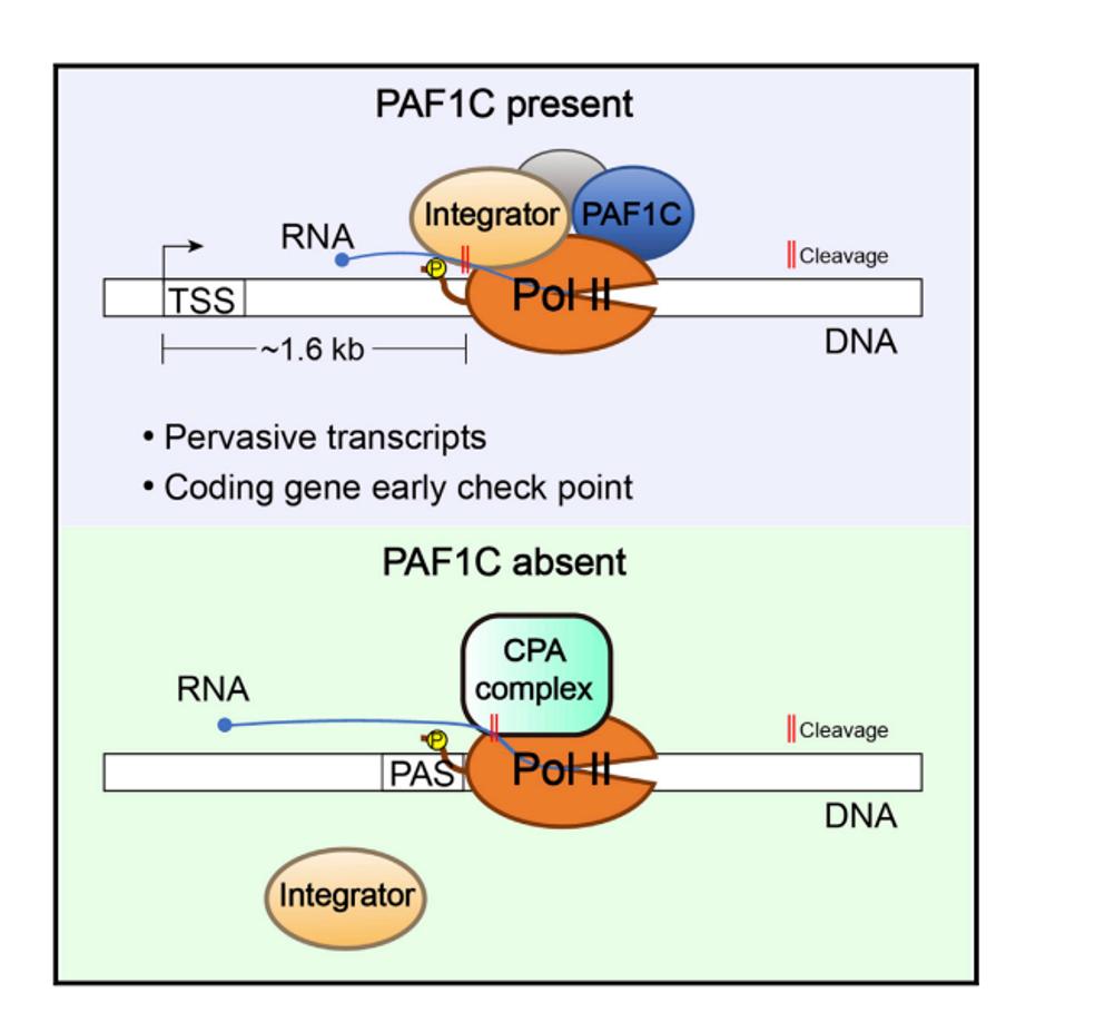 图1. PAF1C通过Integrator调控pervasive transcripts转录终止