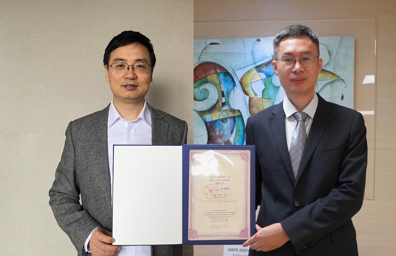冯雪(左)为陈晓东颁发“乐鱼在线平台杰出访问教授”聘书