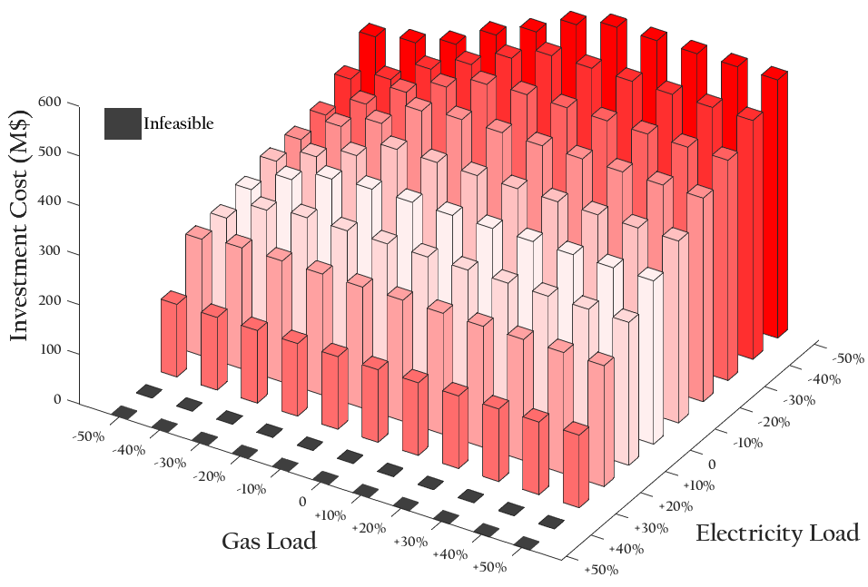 不同电/气负荷下的投资成本