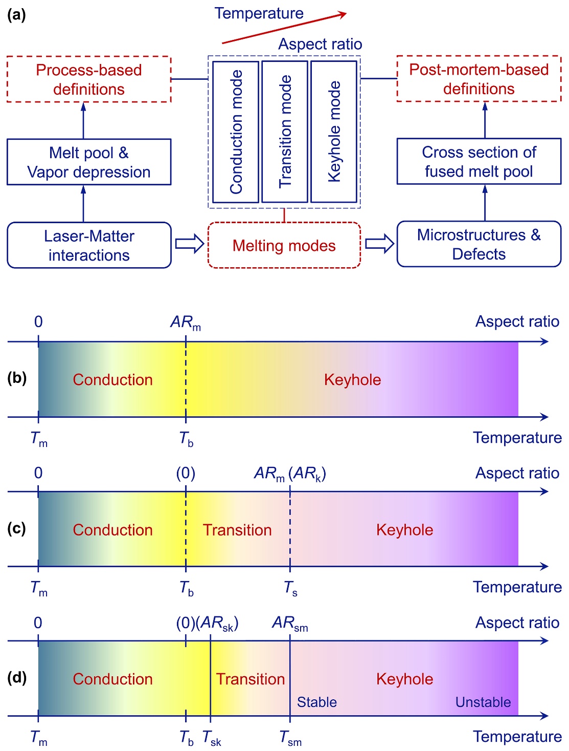 乐鱼(中国)网10月24日电 在过去的三十多年中,金属增材制造技术(俗称金属3D打印)快速发展,对航空航天、汽车、国防、化工、医药、能源等领域产生了深刻变革。激光粉末床熔融增材制造(亦被称作激光选区熔化)是其中最广泛使用的技术之一。然而,迄今为止,学术界对激光-物质相互作用的认识还不够深刻,对激光熔化模式的定义仍然很模糊、尚未达成共识。这使得制造无缺陷、微观结构可控的构件仍有困难,限制了激光粉末床熔融增材制造行业的进一步突破。