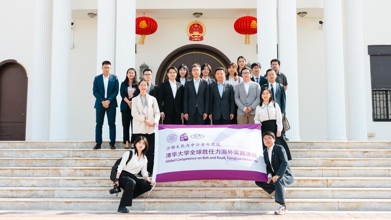 在本次实践中,师生们拜访了中国驻沙特大使馆,大使馆新闻与公共外交处工作人员与清华师生进行了座谈,介绍了中沙文化旅游合作情况、中沙教育领域合作情况和使馆新闻工作,同学们就中沙两国文化交流的现状和前景、中国青年参与中沙合作的能力提升等问题进行了提问交流。