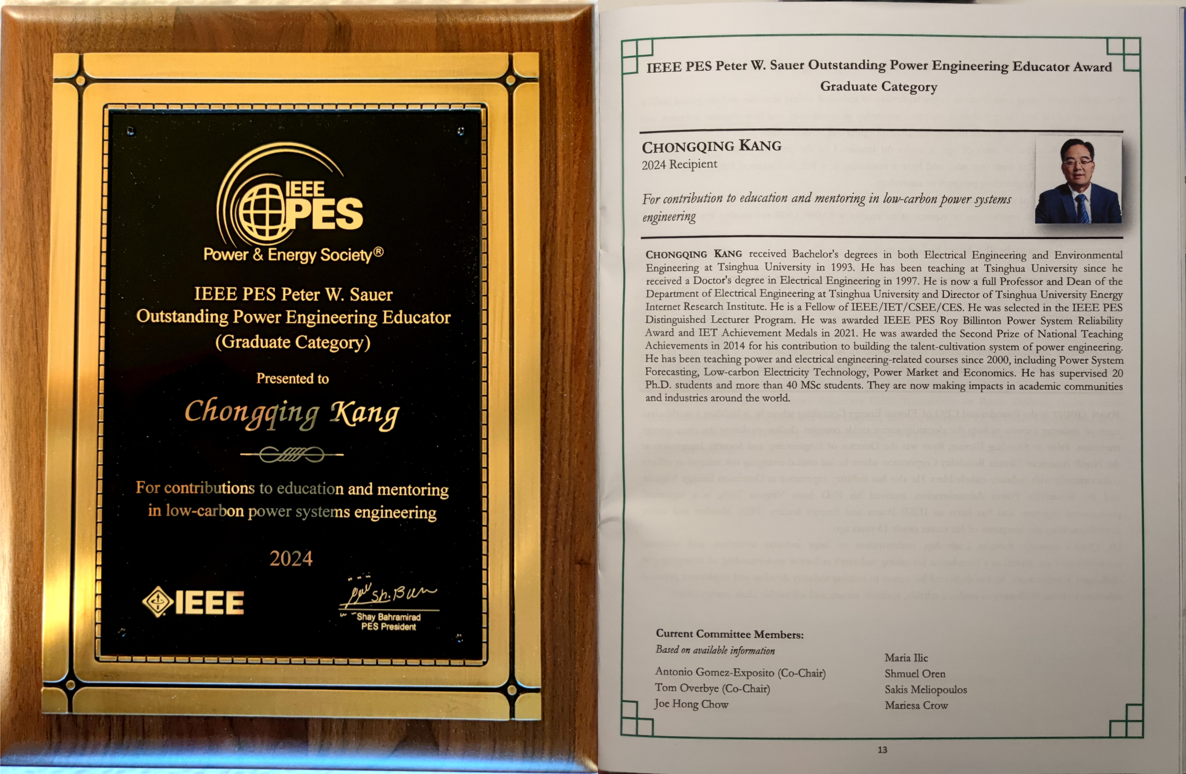 该奖设立于1989年,用于表彰电气工程领域的杰出教育工作者。康重庆是该奖项设立35年以来的首位中国获奖者。