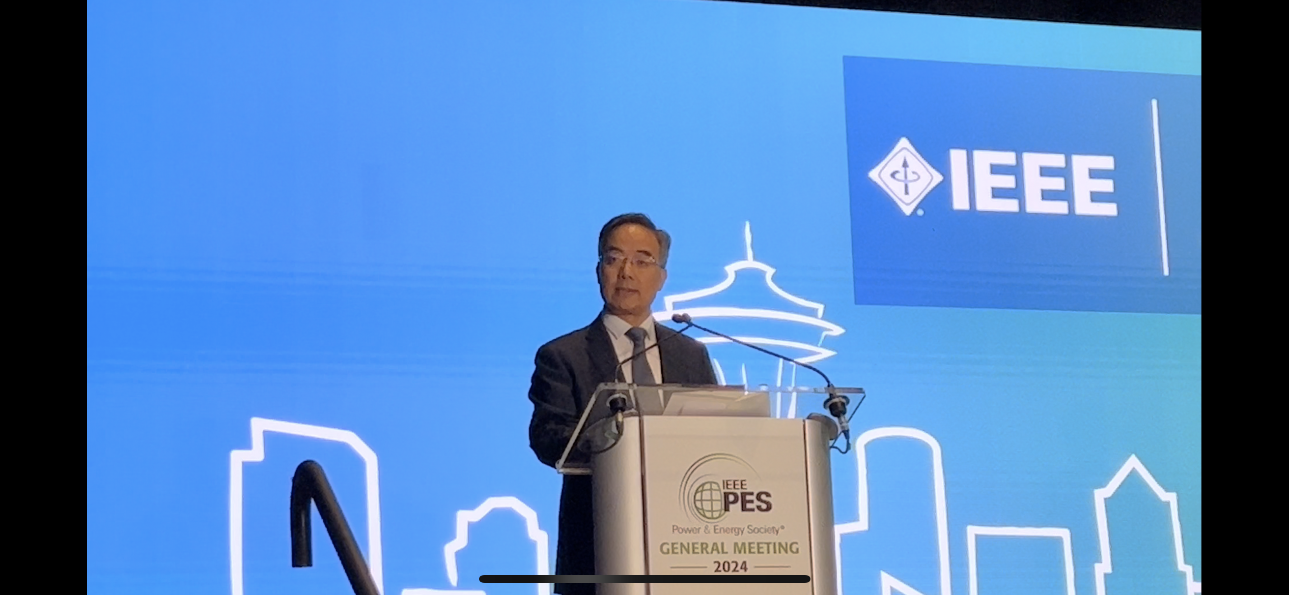 2024年IEEE PES年会颁奖典礼上,康重庆领取IEEE PES Peter W. Sauer杰出电力工程教育奖