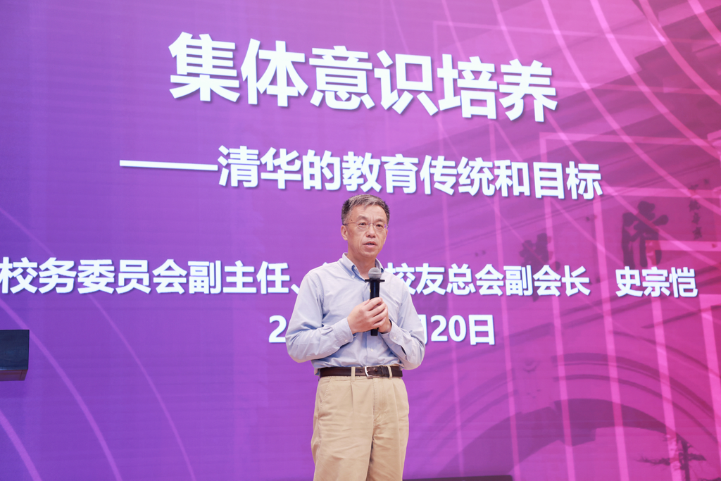 史宗恺以“集体意识培养——清华的教育传统和目标”为主题作报告,从清华塑造集体意识的教育目标出发,强调班集体是大学生活的核心情境,也是学生价值观形成的重要场所。他通过“19个人学一门课总比一个人强”“新生赤足运动会”“老图书馆的桌子”等事例,引导同学们思考如何创造形成集体意识的各种情景和场景,构建群体自我、产生群体认同,并在集体环境中构建积极正向的个体自我、发展个性自我、培养个体能力,希望同学们构建优秀的大学班集体,并在其中成为更好的自己。