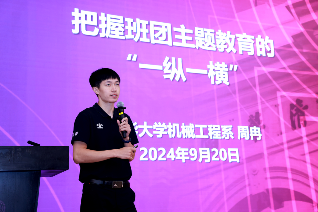 机械系2020级博士生周冉以“把握班团主题教育的‘一纵一横’”为主题作经验分享,结合自身的辅导员经历,从如何选取主题和如何开展活动两个方面阐释了开展主题教育的工作方法。
