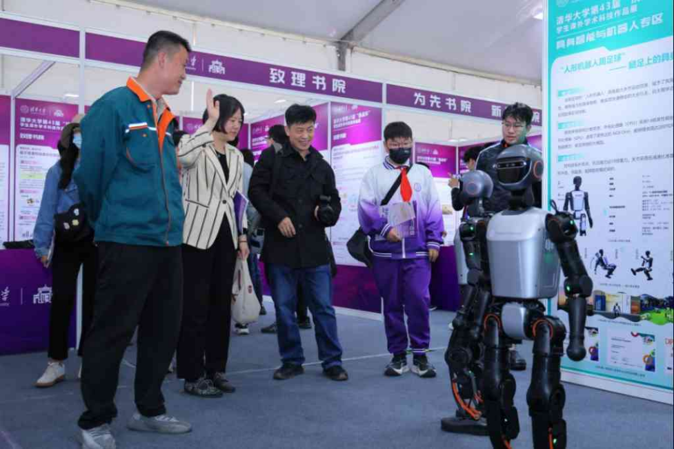 科展现场包括院系展区、AI助教智能体设计专项赛展区、具身智能与机器人展区、环保建设与碳中和展区等。本次作品展有近300件学生科创作品参展,包括墙报展示、实物演示、趣味交互等多种类型。科展期间现场举办结构设计大赛趣味赛、智能车大赛、光电设计大赛、智能体大赛和软件设计大赛,提升师生参与度与体验感。各院系也展示了学科前沿发展方向和院系特色的创新人才培养工作,展现了清华学子在科技创新领域不断探索挑战的精神风貌。