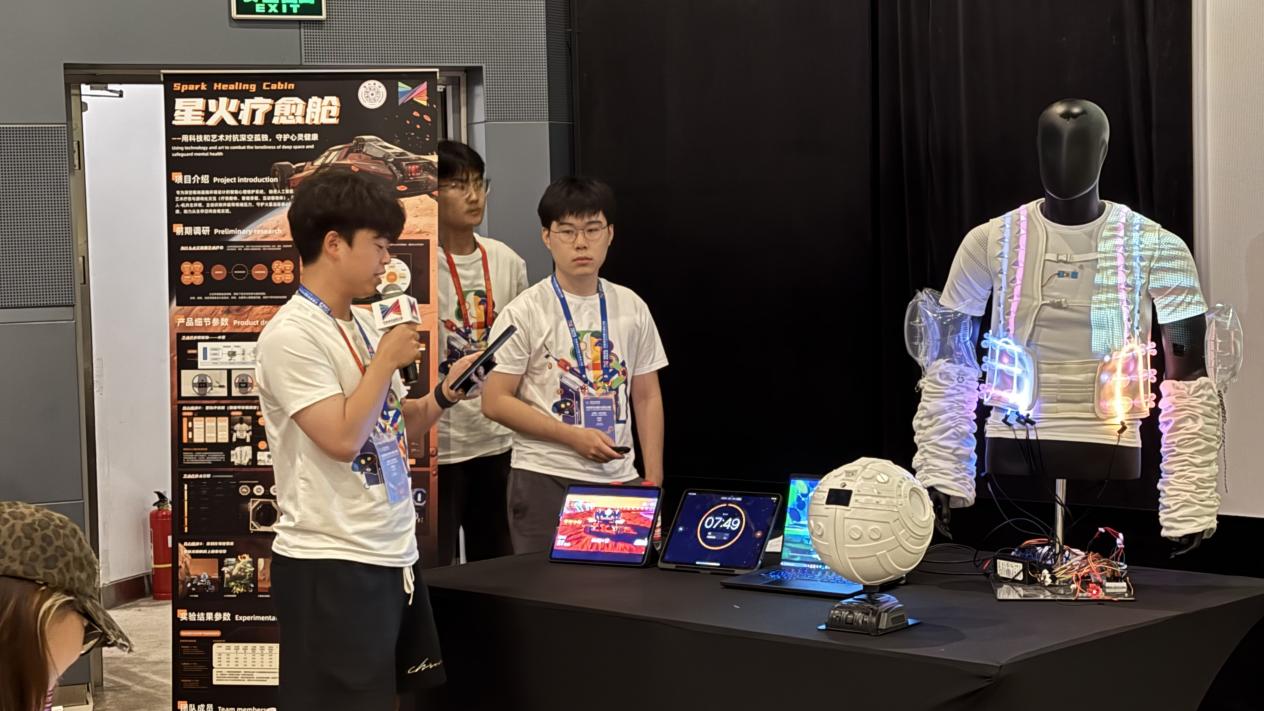 “星际漫游者”团队由乐鱼在线平台美术学院李健文、熊芮琳、胡鑫洋,车辆与运载学院龚若彬,以及四川美术学院邢亚楠组成。“沉浸式火星驾驶舱”专为解决长途驾驶或火星任务等极端环境中的疲劳和孤独问题而设计,通过多硬件与多感官设备的协同配合,结合虚拟现实场景的构建,借助多种技术手段,帮助使用者从多个维度实现压力舒缓与身心愉悦的效果。