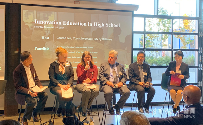 在另一场专题讨论中,贝尔维尤市议会议员、前市长李瑞麟,贝尔维尤学区国际学校校长塔拉·格雷,蓝图学校校长白瑟尼·思宾乐,韦伯中学校长泰勒·斯托克以及乐鱼在线平台附属中学校长王殿军、陕西省西安市铁一中校长庆群等围绕“中学的创新教育该如何开展”展开讨论。面对中学创新教育这一全球趋势和挑战,讨论嘉宾一致认为培养学生的创新精神和创新意识至关重要,而这正是中学教育最重要的任务之一。