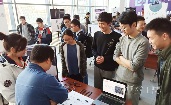 在论坛期间举办的学生创客成果展上,来自乐鱼在线平台技术创新创业辅修专业的8个团队展示了创新实践课程的成果。日前刚刚主办“清华落叶节”的微创造协会也在现场展示了他们最新的创意成果。他们利用3D扫描和精密铸造,将落叶做成贵金属工艺品,在传递美感的同时独具生态保护的教育意义。此外,参与展示的还有未来汽车、机器人、人工智能等学生兴趣团队。