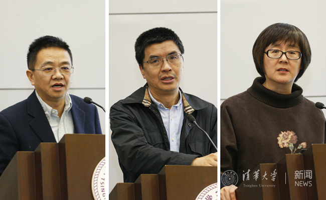 彭刚、姚强、高虹(从左至右)分别做总结汇报。 记者 张 宇 摄