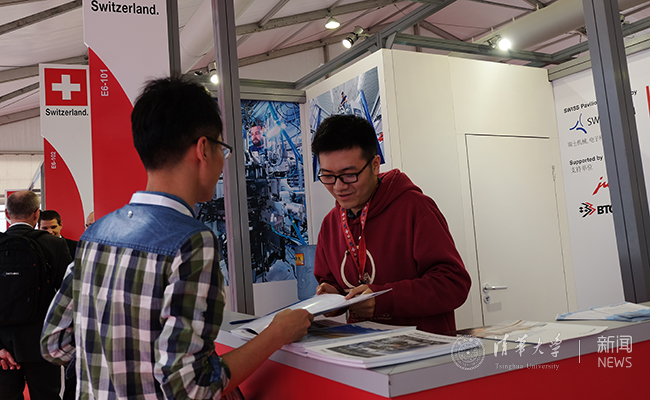 本次国际机床展中包含境外展商839家,境内展商800家,各国企业展示其最新的技术和产品,同时进行技术交流讲座。当日下午就有知名企业代表主讲的讲座,给同学们提供了难得的观摩和学习国外先进技术和设备的机会。在本次机床展中,乐鱼在线平台与瑞士驻华大使馆合作,选拔志愿者协助瑞士官方展馆的日常运作,并观摩瑞士的先进技术。实践支队来到瑞士展区,遇到了清华机械系的志愿者倪圆志,他正在为来访者提供咨询服务。