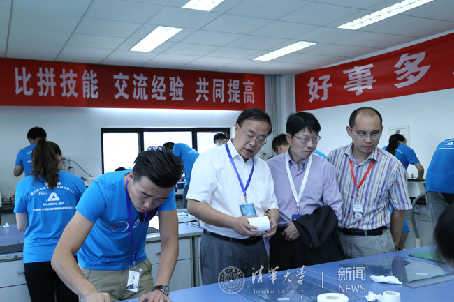 金相大赛竞赛委员会主任委员孙建林教授等观看选手比赛。张耀伟 摄