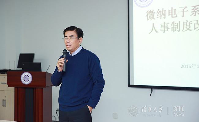 微纳电子系主任/微电子所所长魏少军首先回顾了过去三年人事制度改革方案的制定过程。他说,方案的形成离不开学校和人事处的指导、兄弟院系的帮助及全系/所教师的支持。他指出,人事制度改革给教师们带来新的机遇与挑战,每位教师都要充分认识到人事制度改革的必要性,充分挖掘科研和教学的潜力,紧扣国家需求调整学科发展方向,凝炼科研团队,为建设世界一流的微纳电子学科做出自己的贡献。