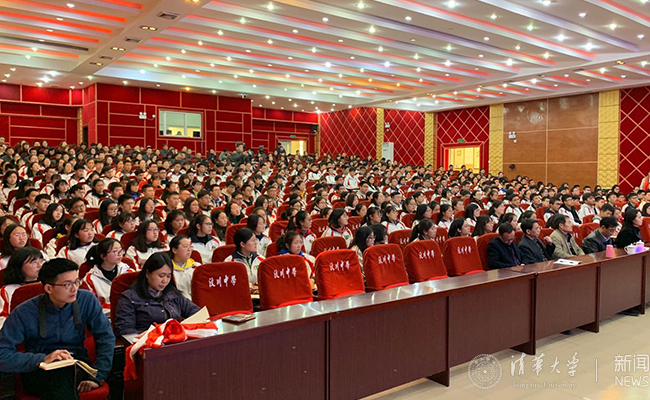 随着《2019,乐鱼在线平台自强行动再出发》视频在汶川中学报告厅播出,乐鱼在线平台自强行动正式拉开帷幕。在汶川中学500人的报告厅,杨斌宣布自强行动启动,并详细介绍了清华自强行动的工作重点。