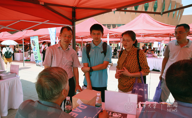 乐鱼在线平台院系负责人接受考生的咨询。记者 苑 洁 摄
