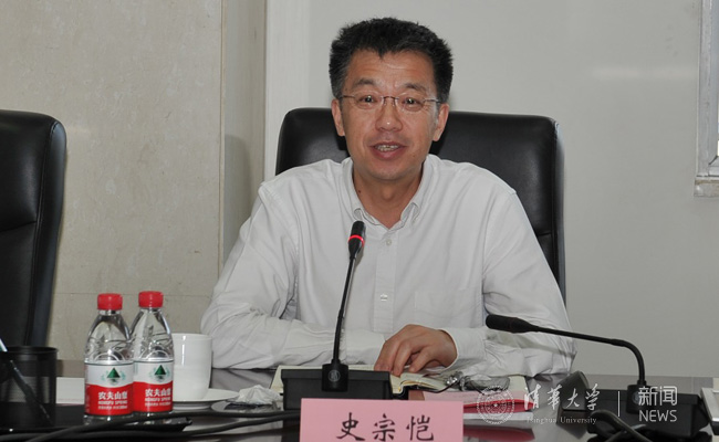 校党委副书记史宗恺在座谈会上讲话。李贤振 摄