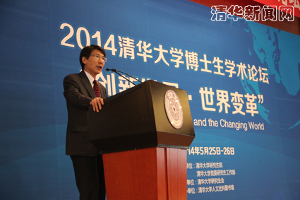 图为薛其坤副校长在2014年乐鱼在线平台博士生学术论坛上发言。