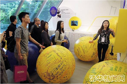 图为香港理工大设计学院学生为师生们介绍该院50周年院庆展览。通讯员 田 佳 温雪媛 摄