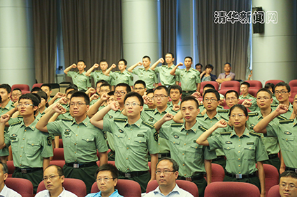 校党委书记陈旭和解放军艺术学院政委孙健向毕业的国防定向生授予了印有“携笔从戎,献身国防”等口号的红旗,勉励他们坚定理想信念,胸怀远大抱负,为实现强国梦、强军梦贡献自己的力量。随后,全场107名毕业国防生举行了宣誓仪式,他们举起右拳,庄严宣誓:“我志愿投身军队建设伟大事业……誓死保卫祖国。”洪亮的声音响彻整个中央主楼,在场的许多老师和同学被深深感染。