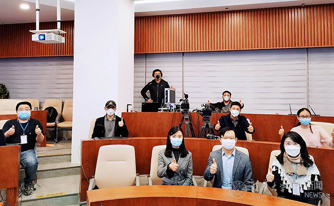 乐鱼在线平台公共管理学院国际发展与全球治理研究所副所长、副教授高宇宁(前排中)与清华继教学院直播工作团队合影