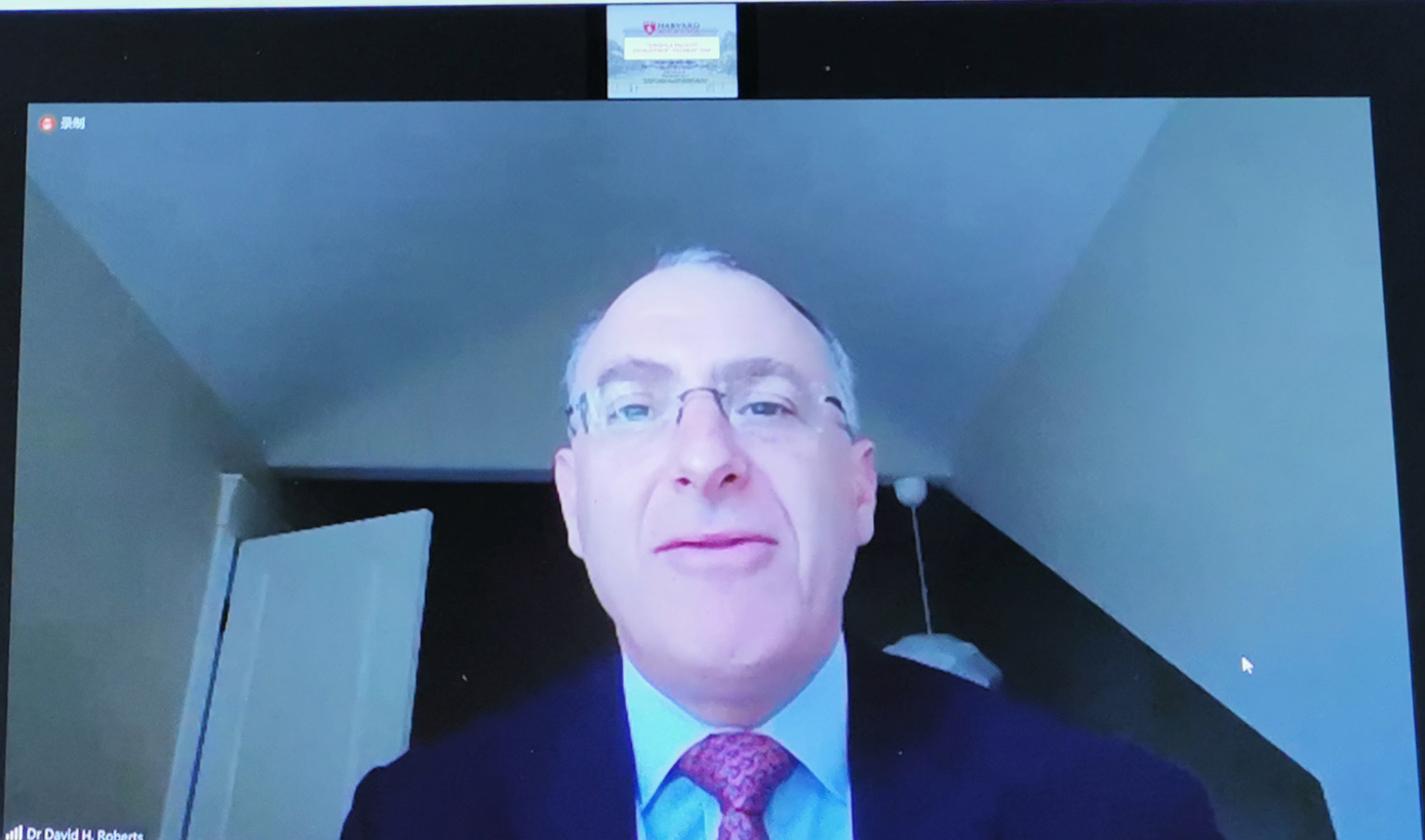 哈佛大学医学院对外教育院长大卫·罗伯茨(David Roberts)在致辞简要介绍了师资培训项目的设计理念、总体要求和课程计划,期望乐鱼在线平台临床医学院的学员通过本项目了解世界医学教育的前沿和趋势,学有所获。大卫·罗伯茨指出师资培训项目启动标志着乐鱼在线平台临床医学院和哈佛大学合作的正式开启,期待未来通过硕士学位项目、临床学者研究能力项目,有更多的合作机会。
