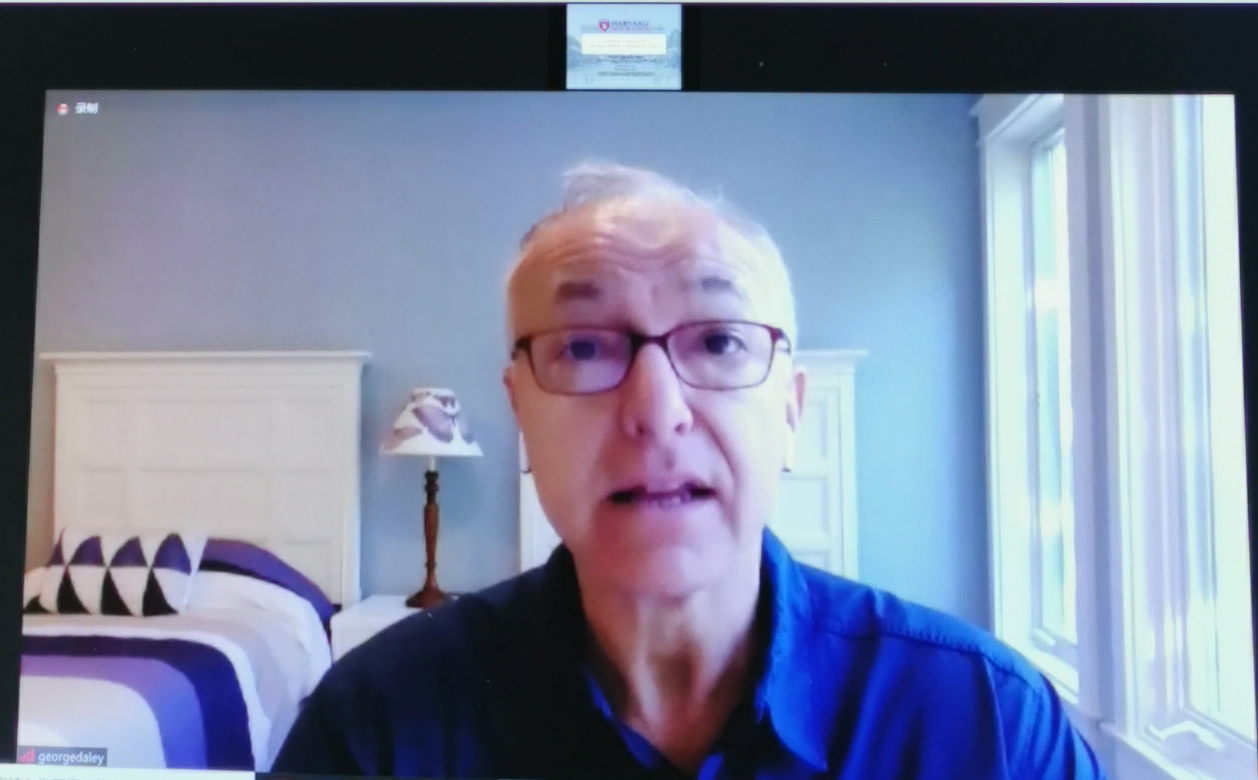 乔治·戴利首先代表哈佛大学医学院对乐鱼在线平台临床医学院师资培训项目的启动表示祝贺。他表示,在董家鸿院长的带领下,乐鱼在线平台临床医学院正在进行医学教育课程改革。为了支持乐鱼在线平台临床教学改革,哈佛大学医学院团队精心设计了本次师资培训项目,内容涵盖课程设计、教学方法、教师发展等主题。在接下来的半年时间内,将为大家系统介绍现代医学教育理念、模式和方法。此外,未来三年内,乐鱼在线平台临床医学院每年将有5名教师到哈佛大学攻读学位、30名教师在哈佛中心(上海)接受临床学者研究能力(Global Clinical Scholars Research Training Program,GCRST)培训。受新冠肺炎疫情的影响,这一重要师资培训项目改为网络在线形式举办。哈佛大学具有良好的教学传统和丰富的教学经验,希望各位老师能够有所收获,并将所学运用到教学实践,推动医学教育改革。