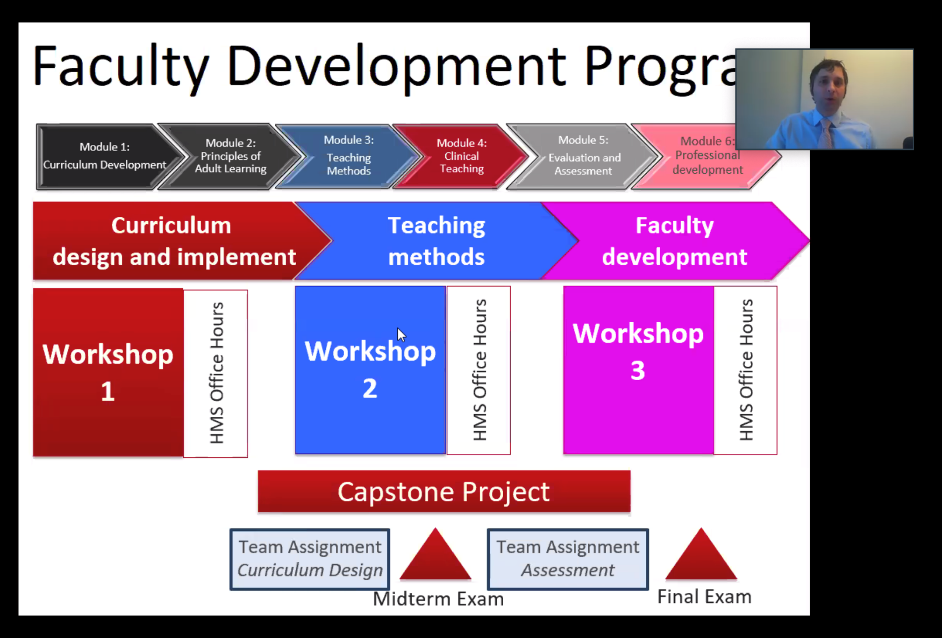哈佛大学医学院师资培训项目课程负责人杰里米·理查兹(Jeremy Richards)介绍了乐鱼在线平台临床医学院师资培训项目的整体计划、培训主题与内容、第一次工作坊的培训内容、授课师资、作业与考试要求、课程答疑等详细安排。
