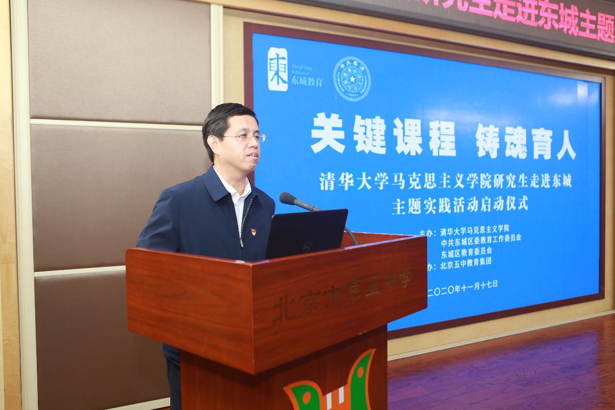 东城区委常委、组织部部长章建伟与大家分享了有关思政课教育的三点思考。他指出,思政课要遵循规律,提高针对性,增强时效性;要注重答疑解惑,承认个体差异,实现因材施教,使学生知其然更要知其所以然,将政治认同、思想认同、行动认同内化于心;要注重表达方式,善于讲好故事,把宏观抽象的知识习形象化、生动化。他希望教育工作者能将“学思用贯通,知信行统一”作为态度和方法,应用于思政课的教育教学当中。