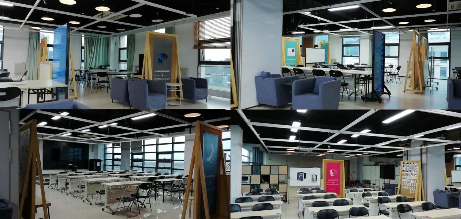 iCenter于李兆基大楼B643室建设了“水木习园下的‘5+1’双创实践空间”,即面向AI创证书下设的智慧城市、智慧医疗、智能交通、智能机器人、智能产品等5个专业方向,以及“钱班”方向的学生,通过空间公用,促进不同背景的学生进行跨学科融合交叉的创新实践活动。