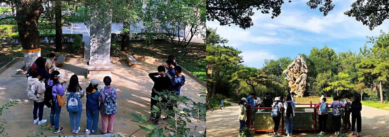 还有老师开设了以“清华学”为主题的美学课程。授课教师采取 “共同学习”的教学方法,安排学生课前阅读材料、实地探访、朗读碑文、拍摄照片,并在课上一同研讨清华风物背后的精神内涵。每一节课的“讲堂”都在不同的地方展开,从校河、到奇石、到纪念碑、到古建筑、再到雕塑,在同学们的研讨和老师别俱一格的讲解下,历史与现实、自然与人文、外表与精神,园子里细微处的用心设计和内含的人文底蕴让同学们陶醉其中。结课后,同学们回顾道:“这门课让我学到了一种态度,教会我保持对世界的热情。这是一段如诗一般美好的旅程,未来,我希望能踏着这首诗的韵脚,越走越远,不负接下来继续深入探索的四年。”
