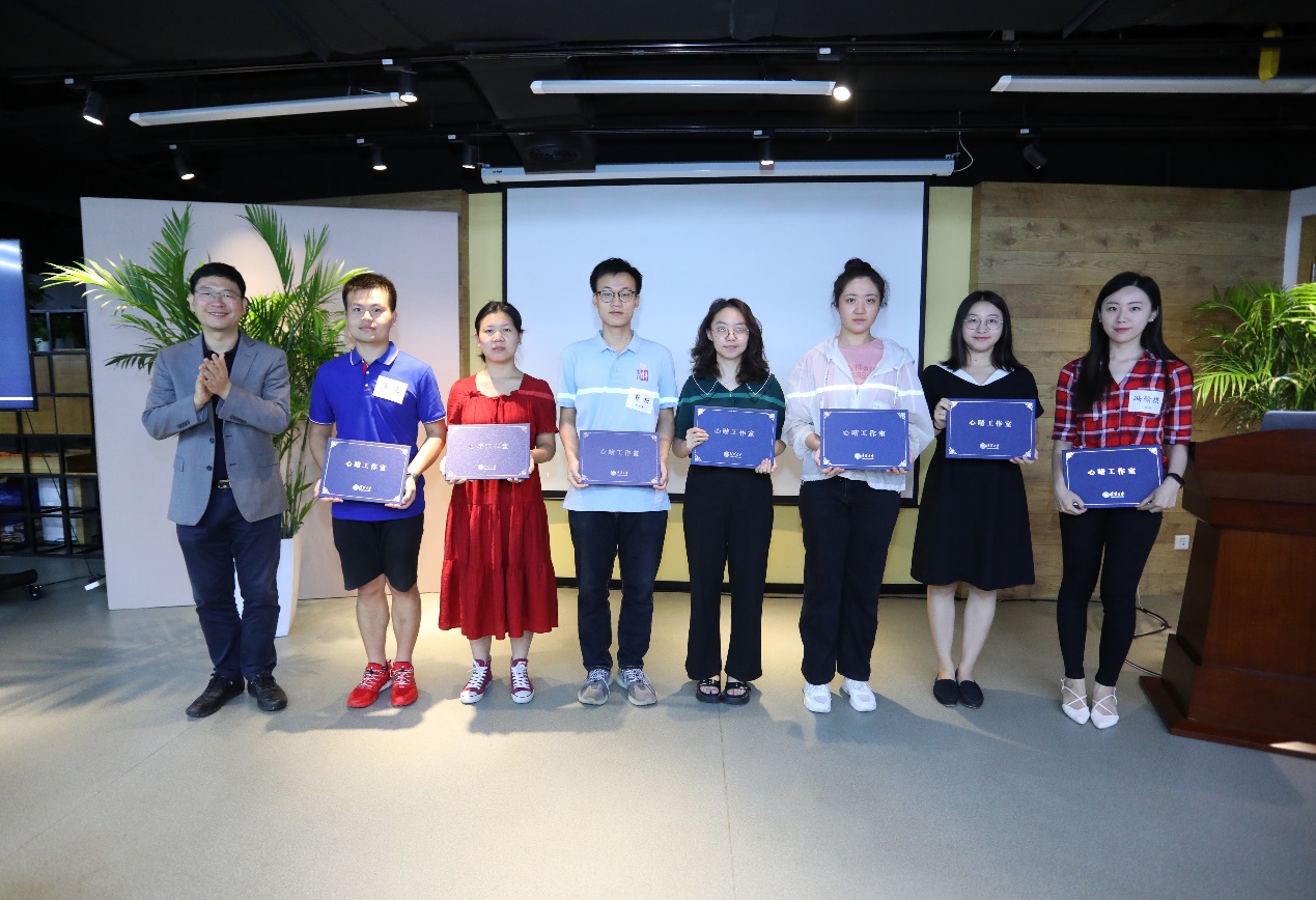 2021年春季学期,来自42个院系的46名研究生骨干参加首期训练营,完成课程和实操环节顺利结业,其中13人申请成为校级“心晴讲师”,面向全校党团班集体提供团队辅导预约。会上,赵岑为13名“心晴讲师”代表颁发证书,李焰和钱婷为一期学员代表颁发结业证书。