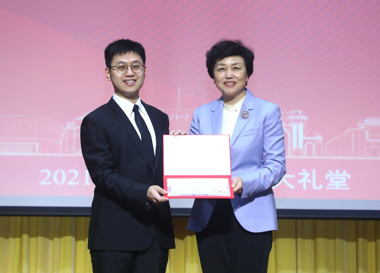 过勇、白本锋、赵岑为蒋南翔奖学金和一二·九奖学金获奖学生颁奖