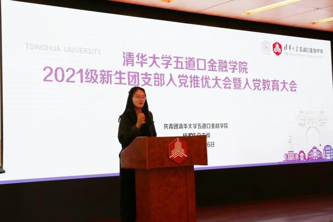 五道口金融学院研究生新生团支部在推优大会中融入入党教育,由党建助理介绍入党流程等内容,探索党团有机衔接、联合考察的新模式,助力入党积极分子队伍建设。