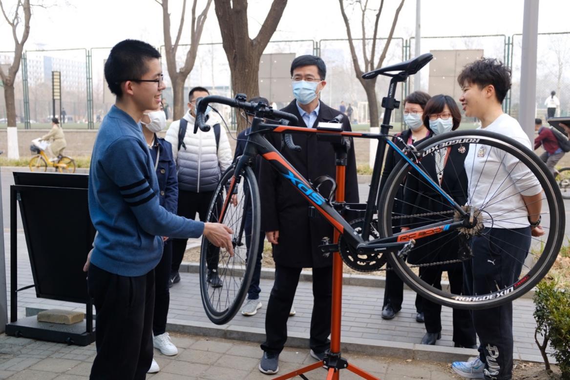 在过勇和队员们交谈的过程中,陆续有同学前来修车。一位法学院的博士生说,“铁马驿站”的工作给同学们带来了很大的便利,为他们点赞。过勇向队员们的付出表达了真诚的感谢,也表示学校将尽力帮助大家解决现存的困难,希望队伍可以服务更多的师生。