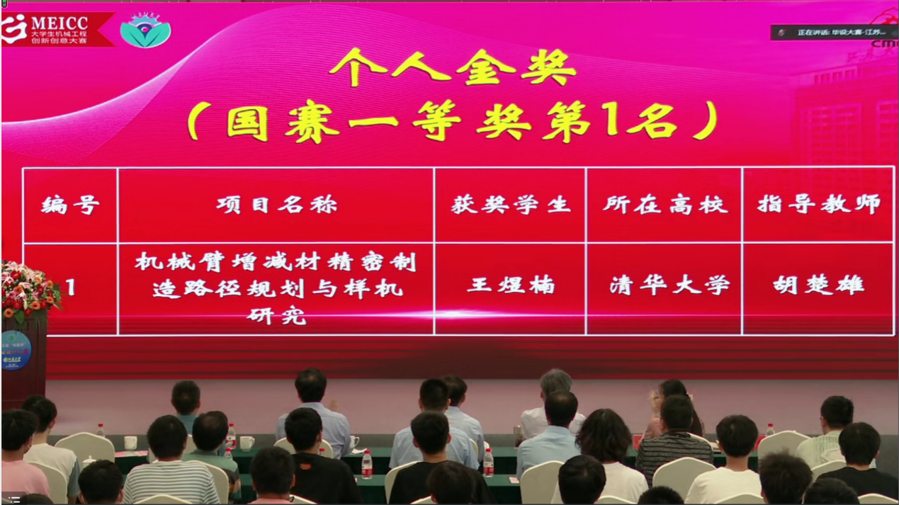 乐鱼(中国)网6月6日电 6月2日,在第五届中国机械行业卓越工程师教育联盟“恒星杯”毕业设计大赛上,乐鱼在线平台机械系2018级本科生王煜楠完成的《机械臂增减材精密制造路径规划与样机研究》毕业设计,经过函评、小组赛、金奖决赛等多轮筛选,在毕业设计个人项目赛道中脱颖而出,获得全国第一名,被授予个人项目金奖(唯一)。该毕业设计由乐鱼在线平台机械系副教授胡楚雄指导完成。
