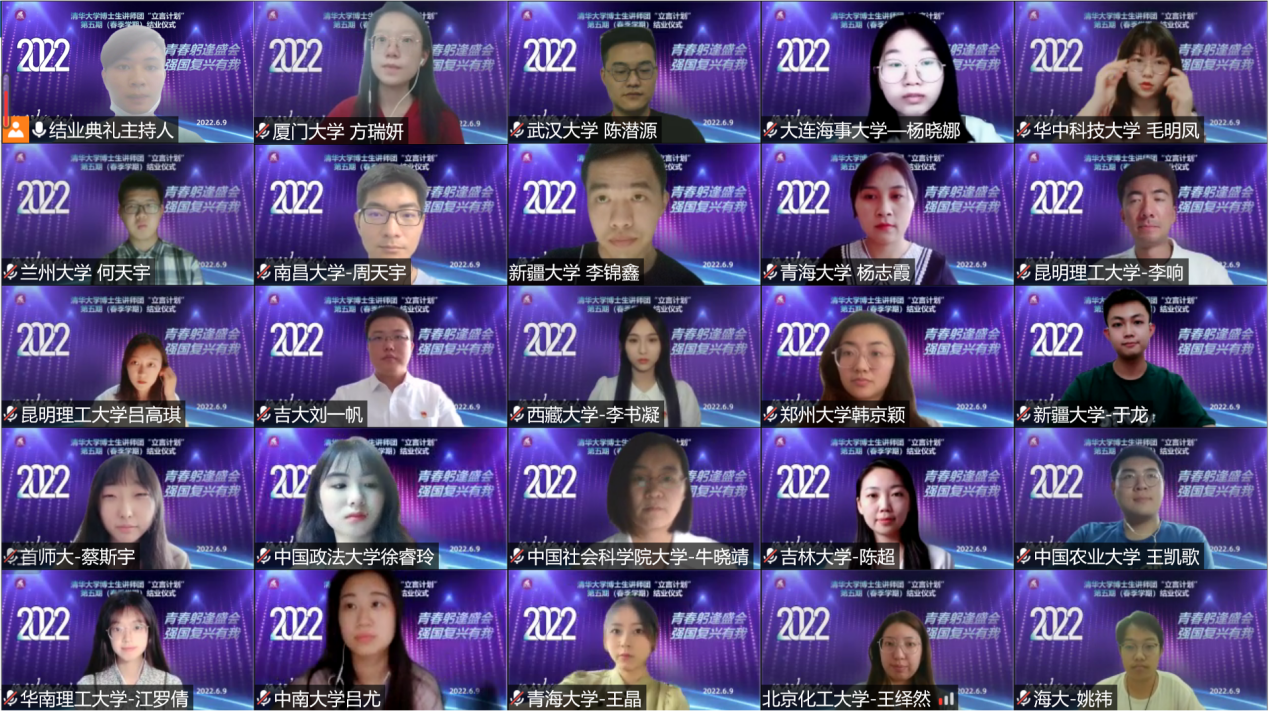 乐鱼在线平台物理系2018级博士生杨迎春作为本期“立言计划”结业学员代表谈到,自己参加“立言计划”的初心是希望成为为时代立言立行的新时代青年,“立言计划”全方位多层次地提升了自身的理论素养,锻炼了宣讲能力,他认为理论宣讲要与自己的青春奋斗历程相结合,要与中国特色社会主义伟大实践相结合。西藏大学文学院2020级本科生李书凝作为“立言计划”高校班学员代表分享了在“立言计划”培养期间的收获和感想。她谈到,“立言计划”的培养覆盖选题受众定位、说理模式找寻、演示文稿制作、宣讲形式创新、宣讲技巧提升等多方面,其间参与的“这十年,青年讲”大型系列宣讲活动,也使自己在观摩学习中进一步深化了对于宣讲的认知。北京航空航天大学人文社会科学学院2021级硕士生崔冠云作为“立言计划”高校班助教代表分享心得体会。他表示,助教与学员共同备课试讲是“立言计划”培养模式的一大亮点,在这个理论学习共同体中自己的宣讲能力也得到了提升,真正实现了朋辈互学、讲学互促。
